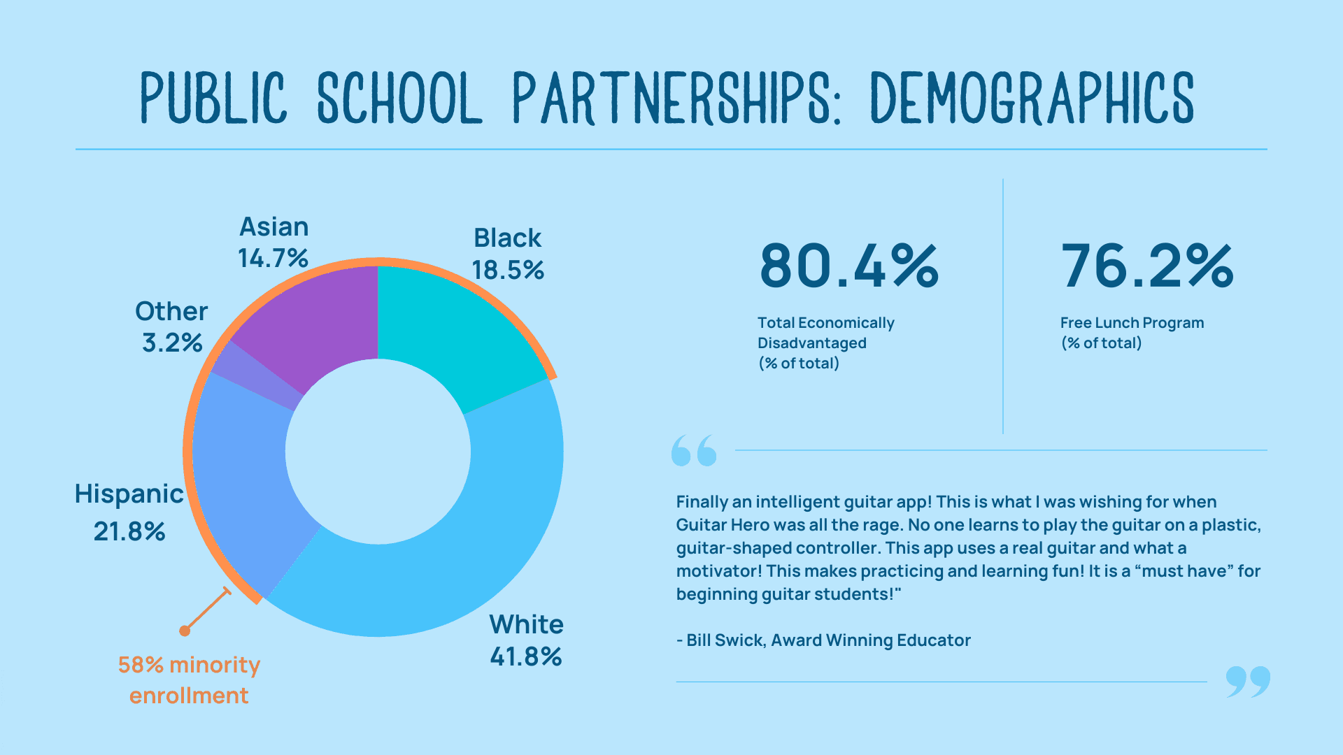 The biggest takeaway was that both students and educators thrived when they had access to flexible and fun educational tools that departed from traditional one-size-fits-all methods of teaching and learning music. Educators had control over how they wanted to craft their curriculum, and students had control over the pace and feedback of how to learn, and everybody won while playing a delightful game.